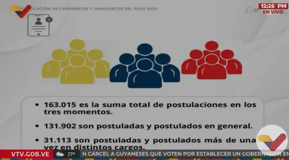 Entre otros datos significativos, reveló que más del 50% de los postulantes son del sexo femenino, con lo cual hay un avance en el liderazgo de este género dentro de las filas del PSUV.