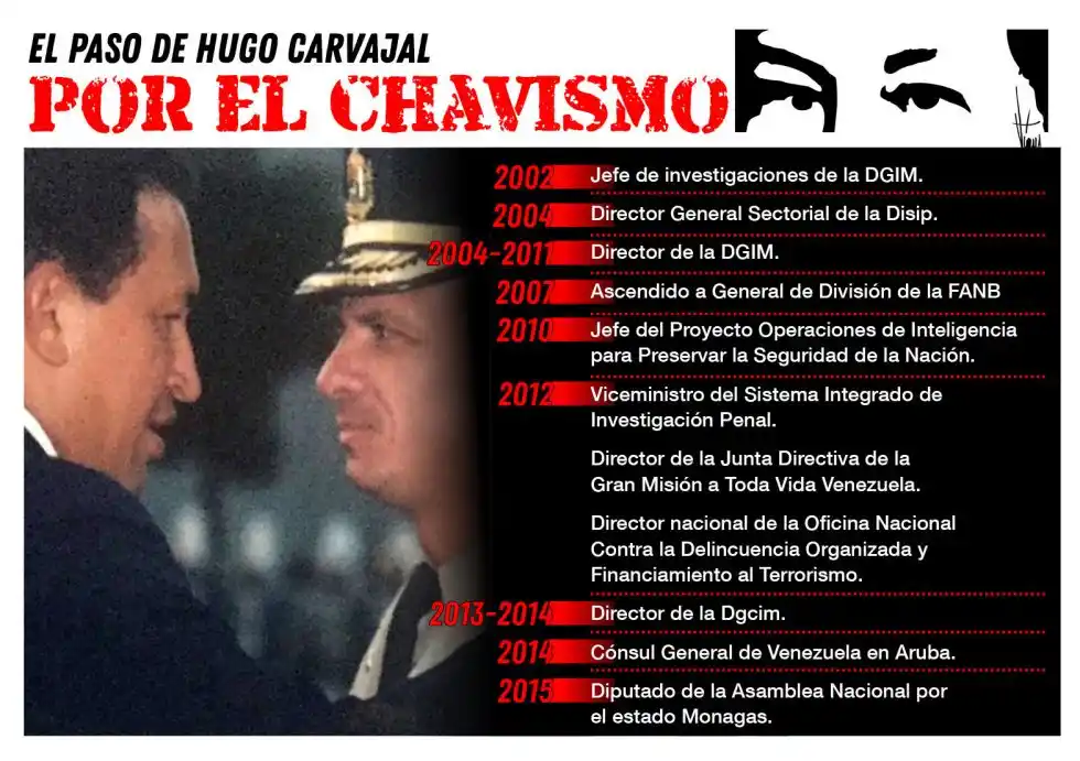 Las imágenes de quien fuera Hugo “El Pollo” Carvajal el jefe de la inteligencia militar en Revolución le dieron la vuelta al mundo en segundos. A continuación los aspectos más relevantes de su historia: