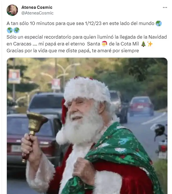 El personaje de larga barba blanca se convirtió en un ícono de la ciudad desde los años 50, en la persona de Ramón Canela, un español que todos los primeros de diciembre se dedicaba a celebrar la fecha. Luego de enfermarse, regresó a su España natal donde murió en 2019. Su hija lo recordó en esta oportunidad con una tierna publicación.
