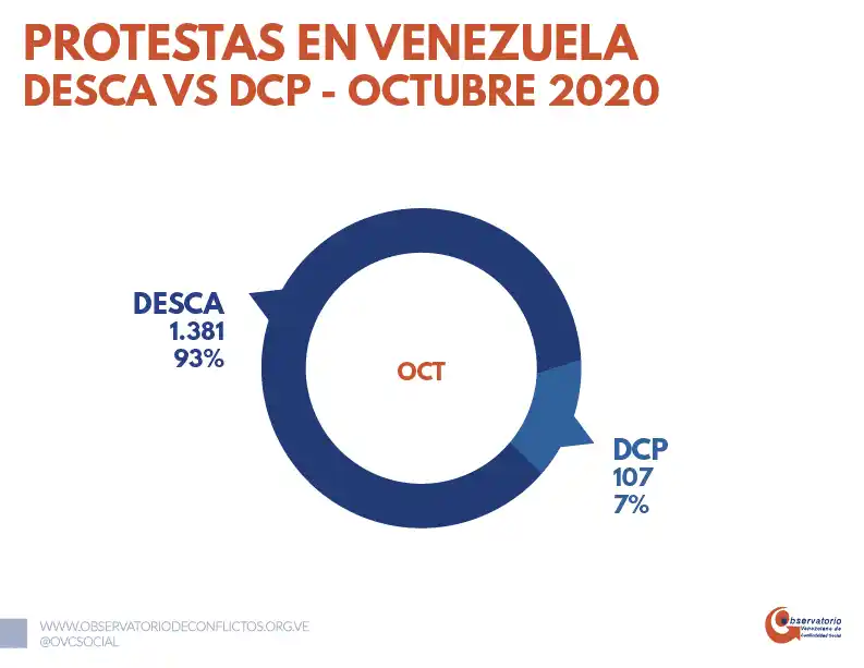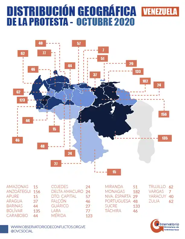 En el mes de octubre de 2020 se registraron 1.484 manifestaciones, es decir aproximadamente 49 protestas diarias y dos por hora en todo el país.