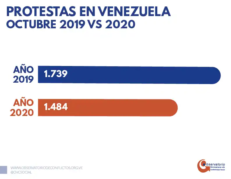 Según un informe del Observatorio Venezolano de Conflictividad Social (OVCS), octubre ha sido el mes con mayor número de protestas pero con una reducción del 15% en comparación con 2019.