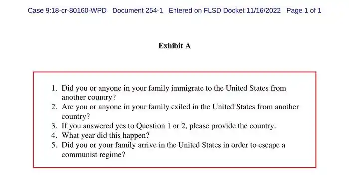 La filtración la dio a conocer el periodista Joshua Goodman en su cuenta en Twitter. Señala que con esta selección «buscan erradicar cualquier sesgo anticomunista entre los residentes del sur de Florida que evaluarán los cargos de lavado de dinero».