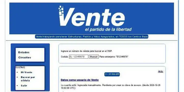 Una presunta filtración de datos en el registro abierto de la organización política Vente Venezuela provocó la revelación de datos de ciudadanos dentro y fuera del país.