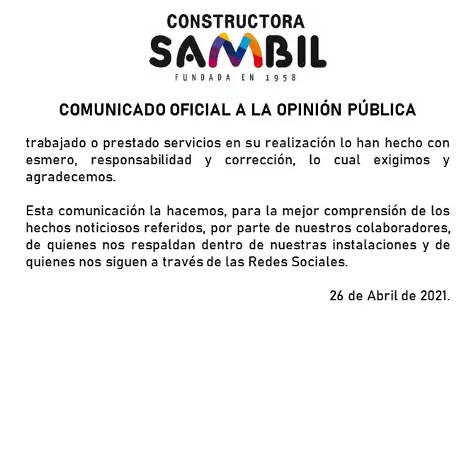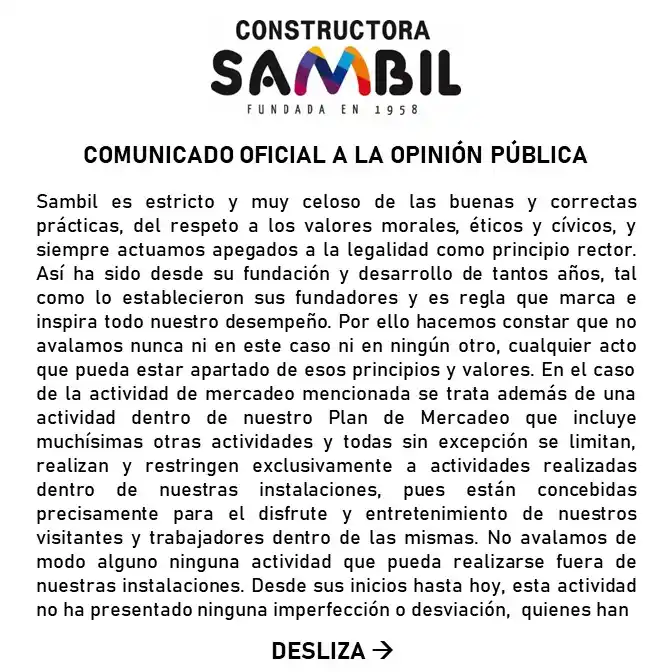 De esta manera Sambil, por medio de un comunicado a la opinión pública aclaró que proveedores externos son quienes se están siendo involucrados.