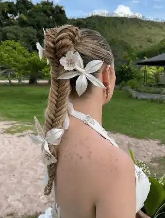 Braun estuvo acompañada en el enlace por su gemela Karina, quien junto con su esposo e hija viajó desde Estados Unidos para ser la madrina. Asimismo, la madre de ambas fue la encargada de llevar del brazo a la novia al altar.