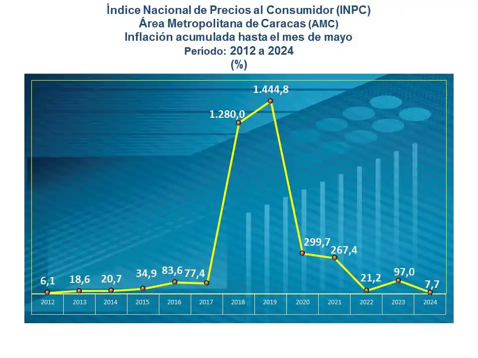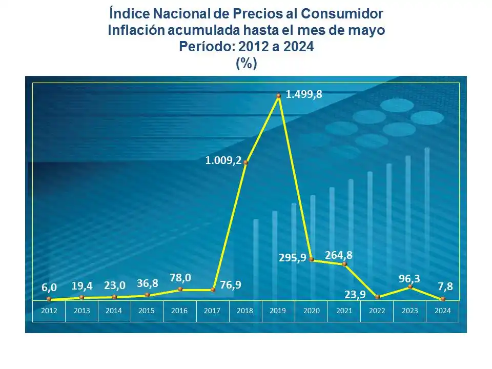 Asimismo, el BCV informó que «la inflación acumulada a nivel nacional en los cinco primeros meses resultó en 7,8%, la más baja para similar período desde 2012 (6,0%)».