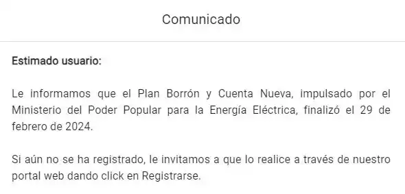 El 29 de febrero culminó formalmente el registro en Borrón y Cuenta Nueva de la Corporación Eléctrica Nacional (Corpoelec), sin embargo aún es posible seguir haciéndolo y se ofrecen alternativas para conocer tu facturación.