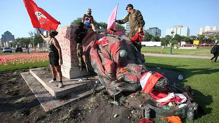 Sin orgullo por el genocidio: canadienses derriban estatuas de las reinas Victoria e Isabel II