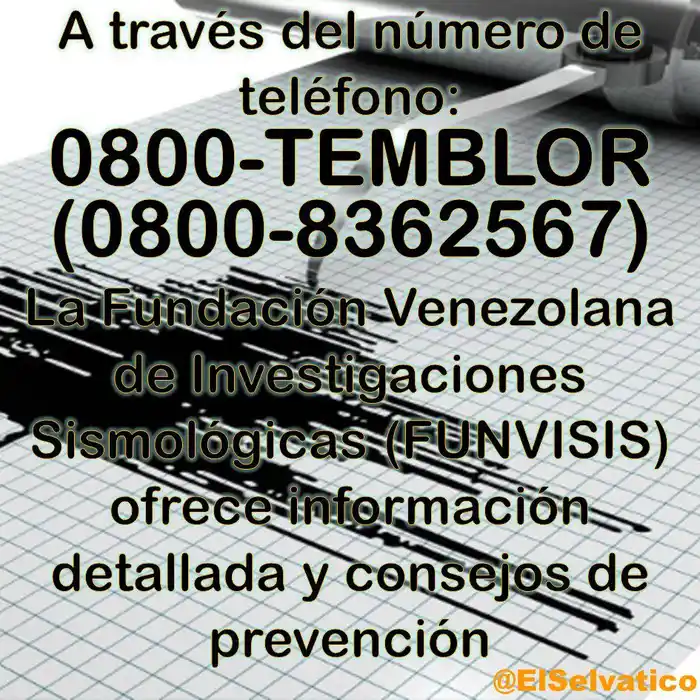 Funvisis tiene a disposición el número 0800-TEMBLOR (0800-8362567) para ofrecer información y consejos de prevención de sismos.