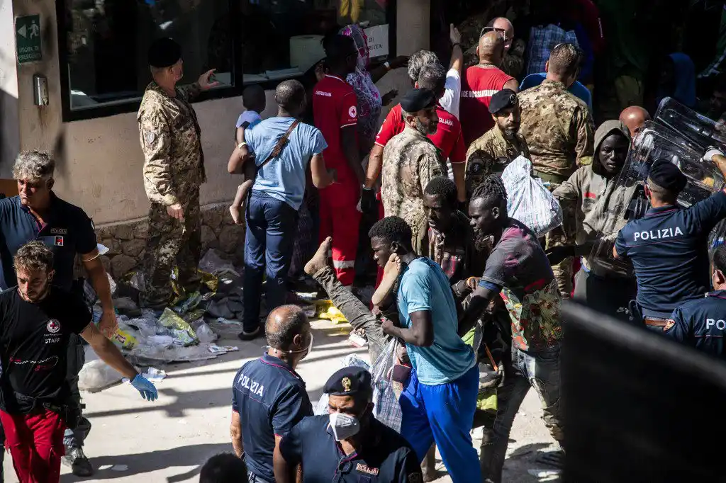 Lampedusa, una isla del archipiélago de Pelagias en el mar Mediterráneo, tuvo una situación de orden público este jueves, cuando arribaron a puerto unos 7 mil migrantes en diversas embarcaciones, proveniente del norte de África.