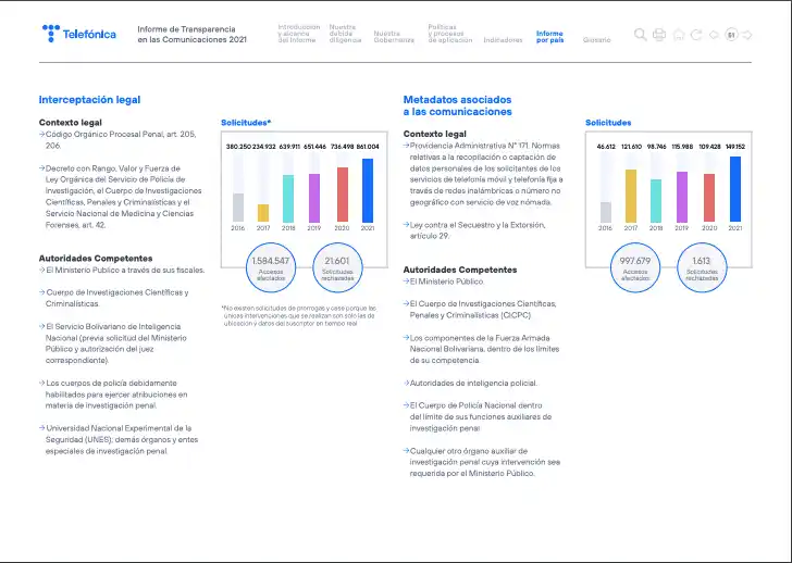 En 2021, Telefónica interceptó las comunicaciones de 1 millón 584 mil 547 líneas de sus clientes en Venezuela, más del 20% de las líneas de teléfono o internet.