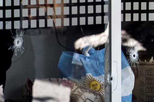 Según los primeros peritajes, hubo un total de 14 disparos que impactaron en su mayoría en la persiana metálica del supermercado.