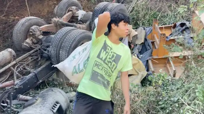 El relato pertenece al parcelero Ángel Valdivieso, uno de los lugareños que llegó al sitio del suceso. “Corrimos a ver qué era y cuando llegamos abajo vimos la gandola toda volteada, desbaratada; la cabina cayó al río”.