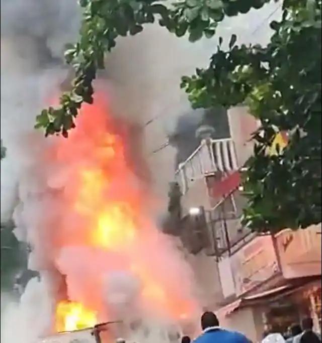 En el video, que se viralizó en redes sociales, se observan como los transeúntes intentan apagar el incendio.