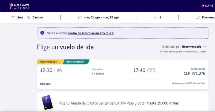 Según la página web de LATAM, el costo de los boletos oscilan entre 338 dólares en clase económica y 453 dólares en Premium, por trayecto.