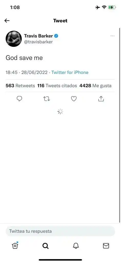 La información se conoció horas después de que Travis Barker alarmara a sus seguidores con uuna publicación en Twitter, en la cual escribió: «Dios, sálvame». También en ese momento se conoció que su hija Alabama pidió oraciones a sus seguidores.