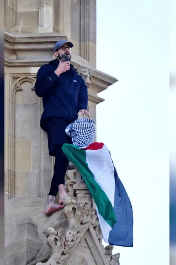 Un hombre escaló la torre del Big Ben portando una bandera palestina (FOTO+VIDEO)