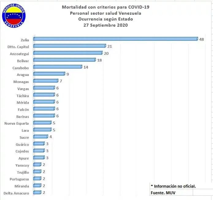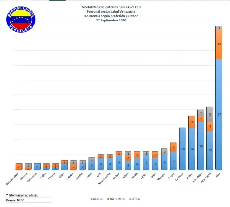 En 24 horas, la ONG Médicos Unidos por Venezuela informó de 5 muertes del personal de salud, cuatro médicos y una enfermera