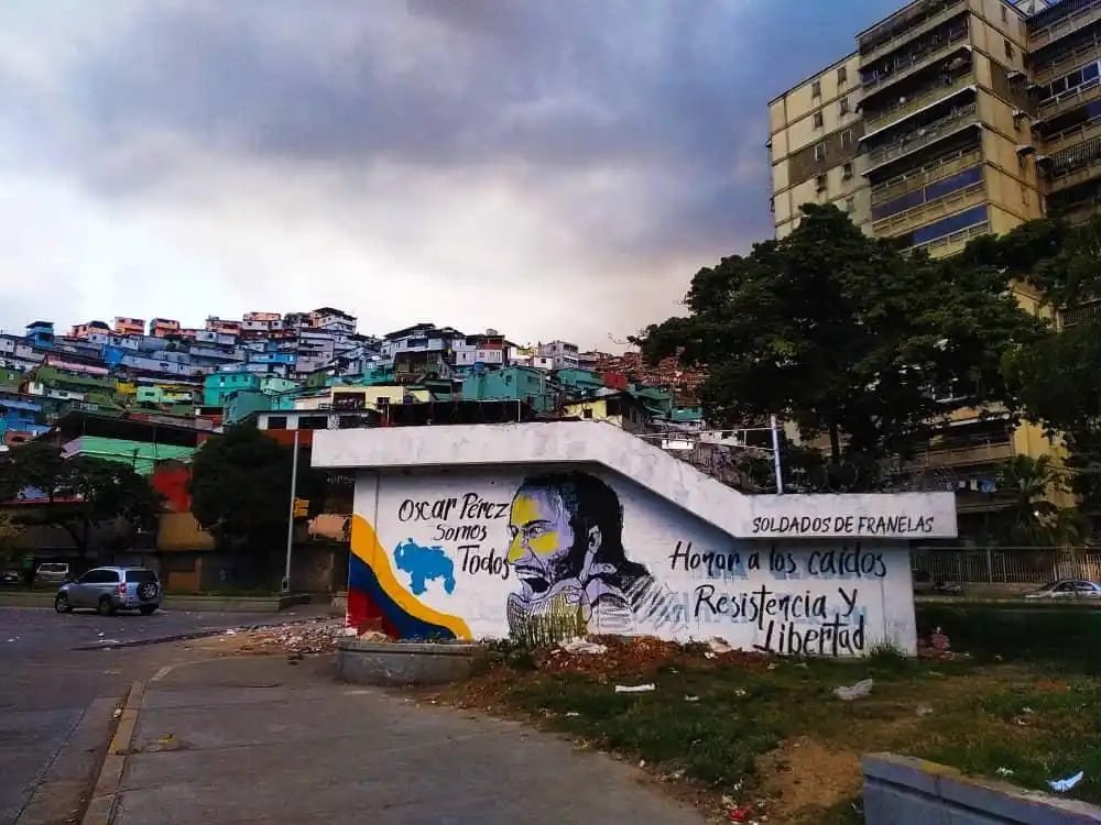 A pocos metros de llegar al Complejo Militar Fuerte Tiuna, ubicados entre las parroquias de El Valle y Coche de Caracas se levantó un mural en honor a Óscar Pérez.