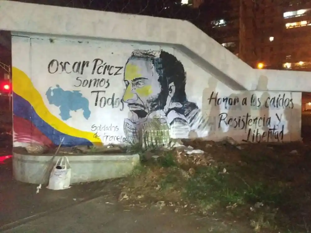La cuenta de Twitter @EsResistencia publicó una foto de un mural que se pintó a pocos metros de Fuerte Tiuna en honor Óscar Pérez. El pasado 15 de enero se cumplieron tres años de su ejecución y de seis de sus compañeros que denominaron la Masacre de El Junquito