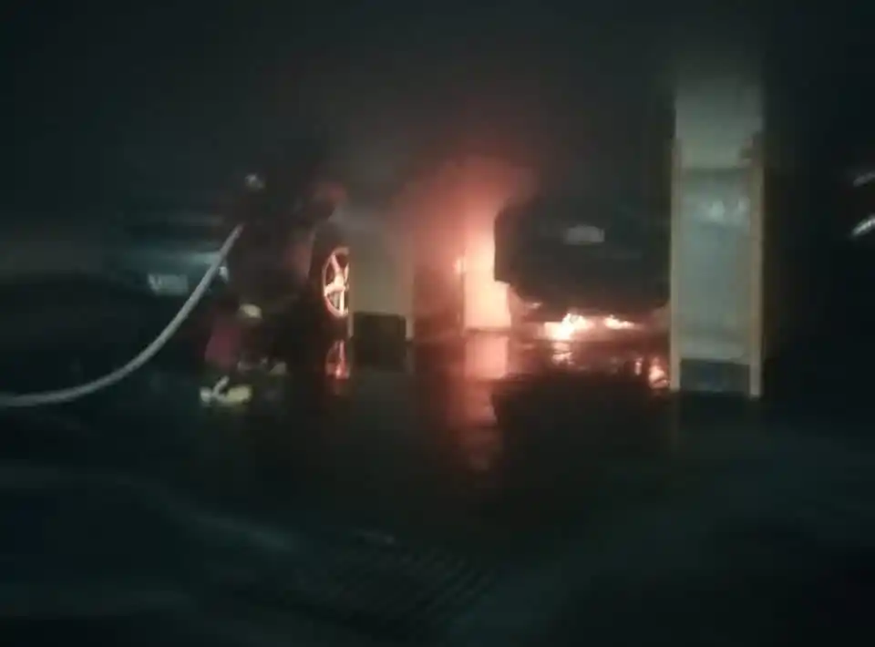 Vehículos se incendiaron dentro de un estacionamiento en el municipio Baruta