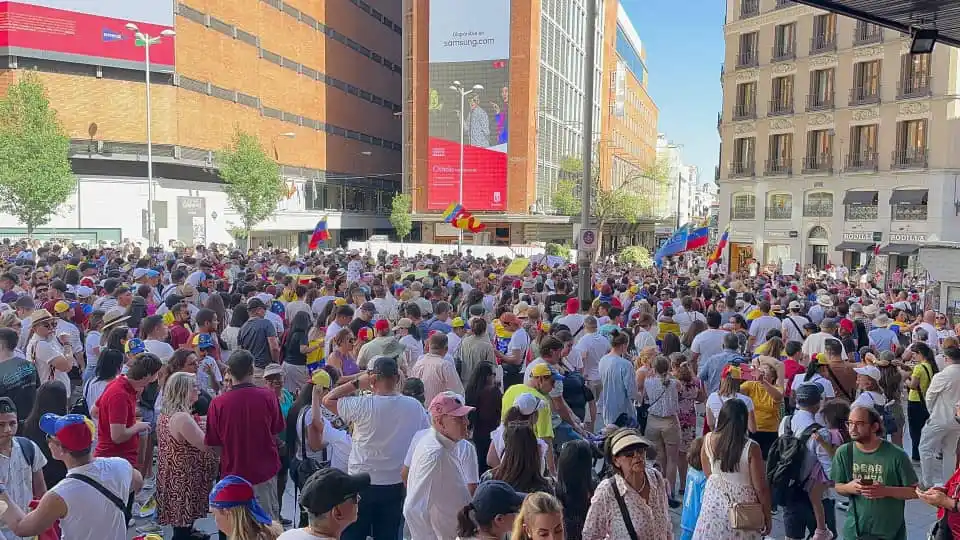 Con consignas y aplausos, los venezolanos en Madrid hicieron un llamado a votar este #28Jul por el candidato unitario, @EdmundoGU