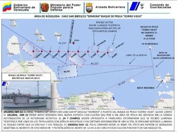 Actualmente, la búsqueda está centrada entre el estado Nueva Esparta, hasta las costas del estado Falcón.